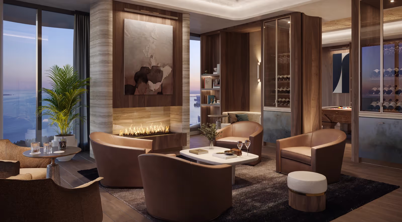 - Design and Architecture: The towers’ neoclassical architecture brings a sense of grandeur to the skyline, while residences are elegantly appointed with imported stone, custom millwork, private elevators, and expansive outdoor terraces. Floorplans range from two to seven bedrooms, including a limited collection of duplex penthouses.